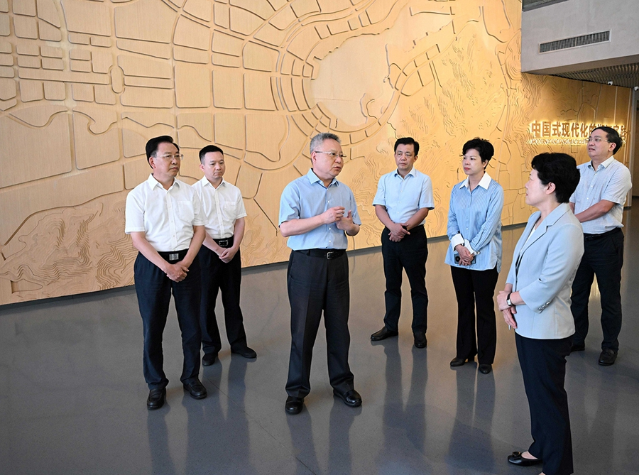 在湖南湘江新区城市馆,沈晓明详细了解湘江新区整体发展概况、国土空间规划及建设等情况,鼓励湘江新区深化体制机制改革和管理模式创新,进一步明确辖区内各产业园区定位,以发展为第一要务,以改革为最重要的手段,争当全省高质量发展的标杆。