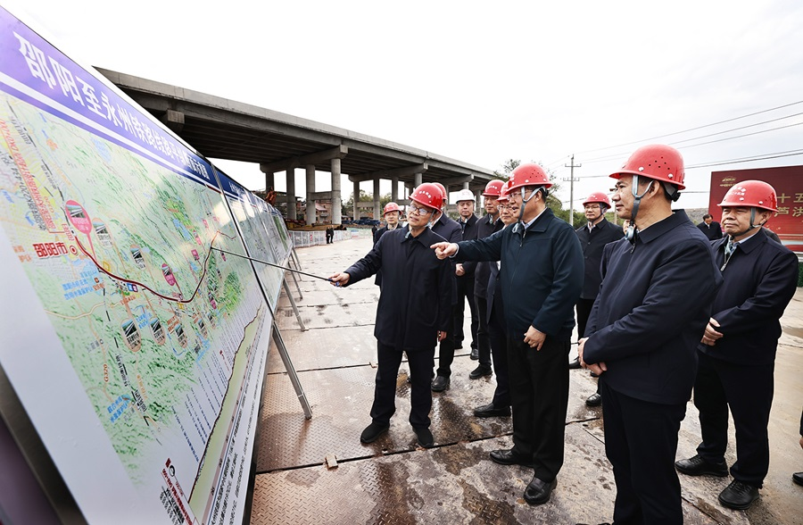 临近岁末,永州积极抢抓政策窗口期和施工黄金期,加快推进重大基础设施建设,助力四季度“冲刺跑”。毛伟明一行先后来到邵永铁路跨芦洪江特大桥施工现场和湘江永州至衡阳三级航道工程三期建设工地,现场查看项目进展和要素保障等。项目负责人介绍,邵永铁路是国家“八纵八横”呼南高铁的重要组成部分,通车后将构建湘南、湘西全面对接和融入粤港澳大湾区的大通道;湘江永州至衡阳三级航道项目建成后将全线贯通岳阳城陵矶至永州萍岛的723km高等级航道,可实现千吨级船舶畅通无阻。