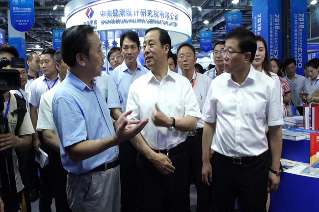 许达哲、陈文浩在2018年大数据空间信息应用博览会上巡展