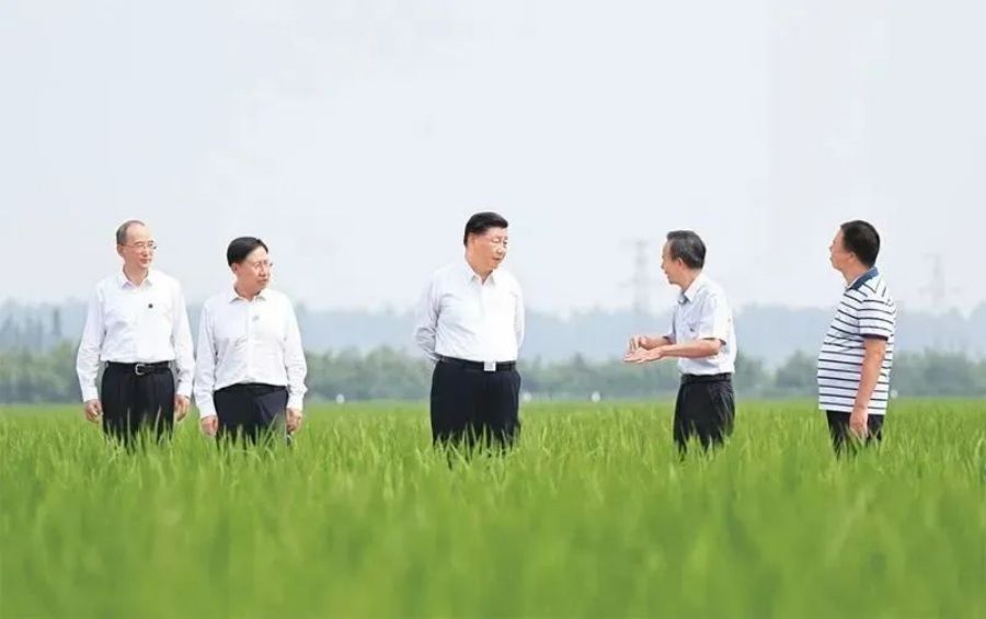 2022年6月8日,中共中央总书记、国家主席、中央军委主席习近平在四川考察。这是8日上午,习近平在眉山市东坡区太和镇永丰村高标准水稻种植基地考察,了解水稻试验育种和种植推广情况。新华社记者 谢环驰/摄