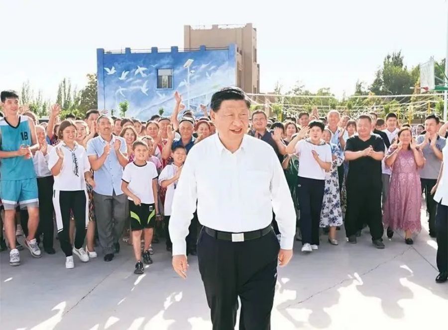 2022年7月12日至15日,中共中央总书记、国家主席、中央军委主席习近平在新疆考察。这是14日,习近平在吐鲁番市高昌区亚尔镇新城片区新城西门村考察时,同各族群众在一起。新华社记者 李学仁/摄