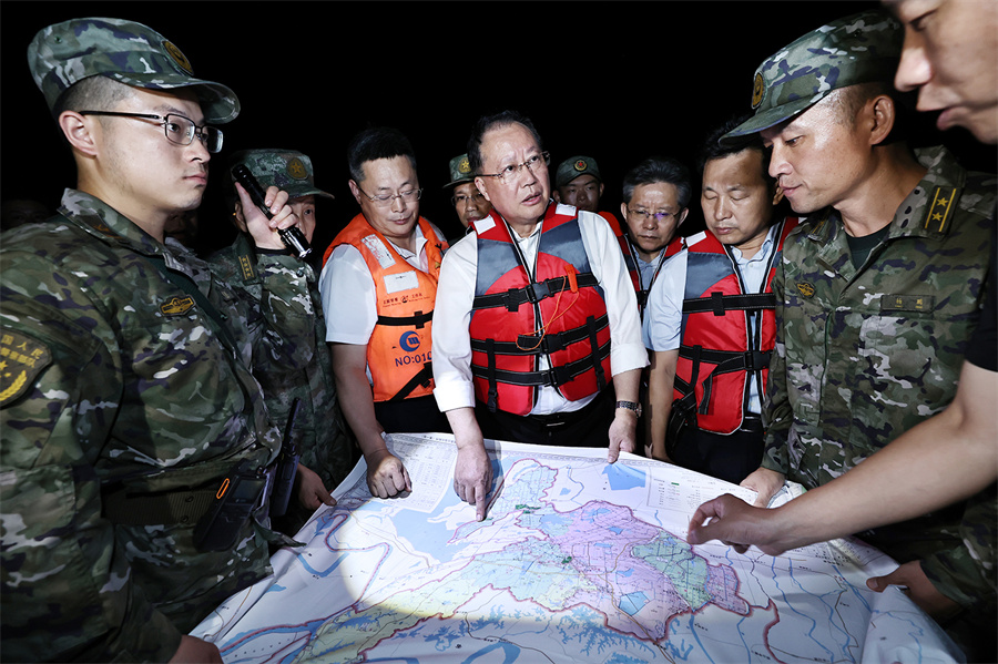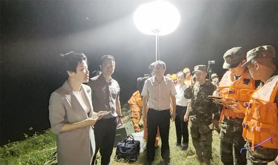 7月5日晚,毛伟明在华容县团洲垸洞庭湖堤防决口现场调度指挥抢险救援。