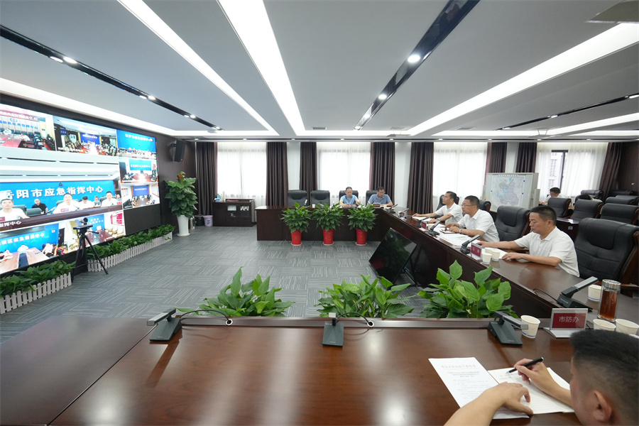 7月5日下午,谢卫江在岳阳市应急指挥中心紧急调度华容县团洲垸险情处置工作并召开全市防汛抗灾视频调度会。