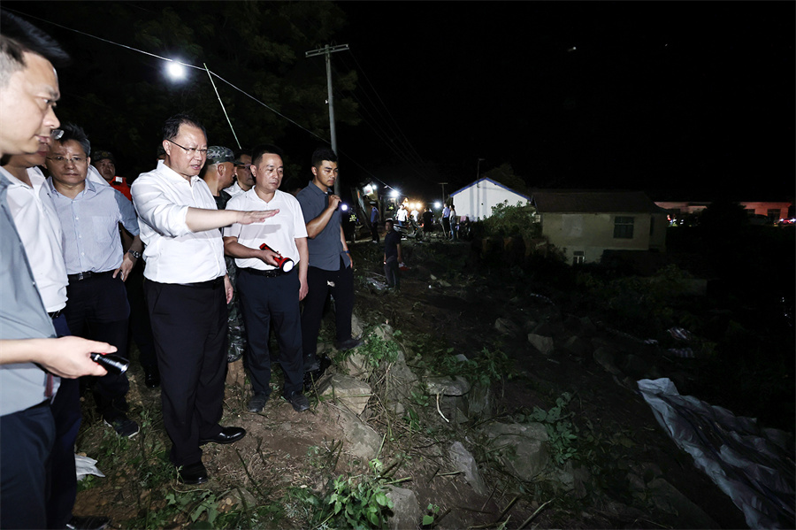 毛伟明一行连夜赶赴华容县团洲垸,现场查看水情险情,研究部署抢险救援工作。截至7月5日23时,溃口已扩大到100米以上,水流急、水量大,抢险形势十分严峻。解放军、武警、消防、应急、水利等多部门正开展联合作业,第一批挖掘机、运输车、冲锋舟等应急物资设备已集结到位。毛伟明强调,大家务必提高政治站位,全力以赴、严防死守,确保人民生命财产安全。要果断转移危险区域群众。加强对团洲垸的人员巡查工作,防止有人滞留;加快疏散撤离团洲垸安全区群众,确保不漏一人、万无一失;做好钱粮湖垸尤其是钱南垸的人员撤离预案,一旦发生险情,迅速组织撤离。要坚决守住间堤防线。派出干部分段把守、专人负责,确保把责任落在实处,重点做好隔水间堤薄弱堤段、穿堤建筑物等薄弱环节盯防和加固,不放过一个漏洞、不留下一个死角,全力以赴确保第二道防线安全。密切监测水速变化,科学制定封堵方案和团洲垸排涝方案,一旦条件允许就开展实施。要做好现场警戒保障。抓紧设立警戒区域,迅速搭建救援平台,加快石料等抢险物资调度运输,确保现场抢险通道高效畅通。要完善现场应急组织体系。加快构建上下贯通、各方联动的组织体系,调度各方力量开展抢险救援,做到有力、有序、有效。