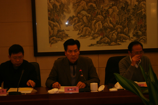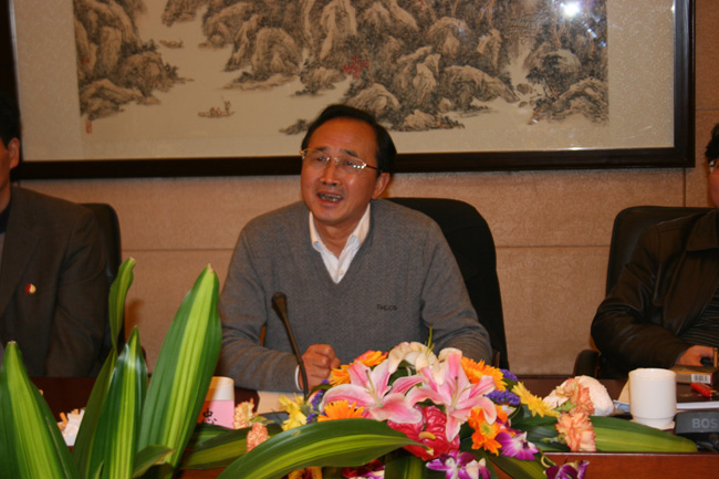 (图:国土资源部政策法规司副巡视员赵久田主持调研座谈会)