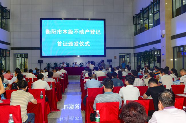 6月28日上午,衡阳市本级不动产统一登记首证颁发仪式在市政务服务中心隆重举行。省国土资源厅党组书记、厅长方先知,衡阳市委副书记、市长周海兵,衡阳市委常委、副市长罗东海出席仪式并共同颁发衡阳市城区首批不动产权证书。这标志着衡阳市不动产统一登记发证工作正式拉开序幕,不动产统一登记制度正式落地。