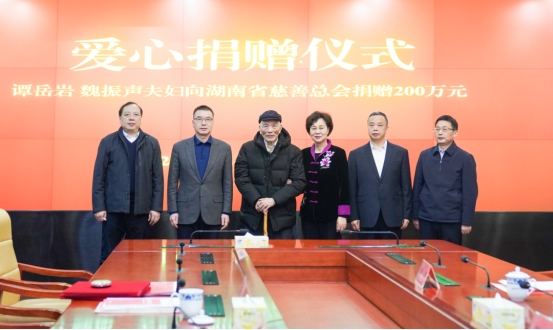 2月12日上午,厅直系统退休老干部谭岳岩、魏振声夫妇向湖南省慈善总会捐赠200万元设立“山石慈善基金”,捐赠仪式在省民政厅举行。省慈善总会会长黄兰香,省自然资源厅党组书记、厅长李全胜,省民政厅党组书记、厅长曹忠平,省民政厅党组成员、副厅长蒋建华,省自然资源厅党组成员、副厅长谢文出席,省民政厅党组成员、副厅长,省慈善总会常务副会长廖国核主持仪式。