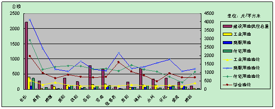 全省各市州建设用地供应总量位居前三位的是:长沙、岳阳、郴州,分别为2209.07公顷、785.26公顷和679.31公顷;张家界供应面积最少,为79.03公顷。