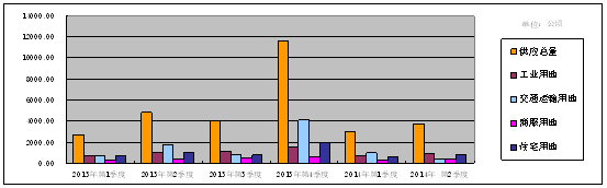 ●建设用地供应总量6754.8公顷,同比减少10.2%,其中商服、住宅、交通运输用地、工矿用地同比分别减少0.2%、20.3%、43.2%、4.7%。