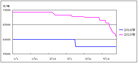 图8 2013年、2014年上半年钨矿价格走势对比图