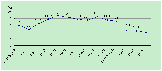 1、由于房地产调控政策收紧及今年以来信贷持续收紧等因素影响,湖南房地产开发投资,施工面积、新开工面积等均出现不同程度回落。以2013年1-3月至2014年1-6月数据为例,2013年全年增速维持在18%左右,2014年1-6月回落明显,增速由年初的18%降到9.7%,下降了8.3个百分点,见图10。