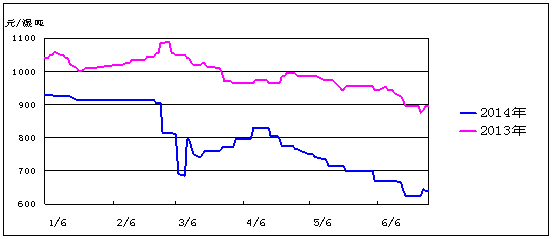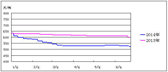 图6 2013年、2014年上半年煤炭价格走势对比图