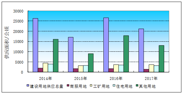 图2 2014-2017年建设用地供应情况(按土地用途)