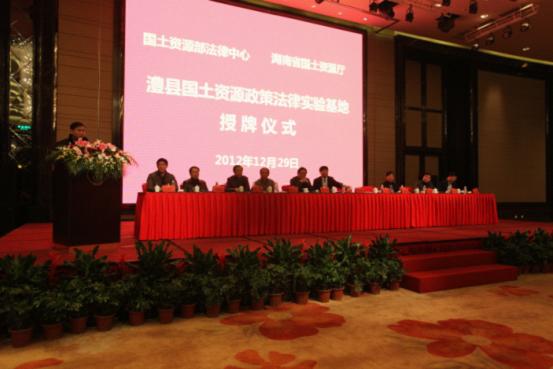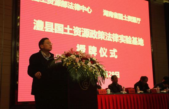 在认真学习贯彻党的十八大精神,落实中央经济工作会议和农村工作会议精神之际,2012年12月29日,部法律中心与湖南省国土资源厅共建的“澧县国土资源政策法律实验基地”在常德市澧县举行授牌仪式。授牌活动由常德市政府副秘书长关建锋主持,国土资源部法律中心主任孙英辉、国土资源部矿产开发管理司副司长王昆、湖南省国土资源厅常务副厅长颜学毛、国家土地督察武汉局监察二室主任陈汉江、常德市国土资源局局长刘建跃、澧县人民政府县长杨易、常务副县长朱金平、副县长高建平、中国地质大学(武汉)公共管理学院院长李江风、以及部法律中心、湖南省国土资源厅、澧县国土资源局相关处室负责同志一同出席。朱金平常务副县长、孙英辉主任、王昆副司长先后致辞。